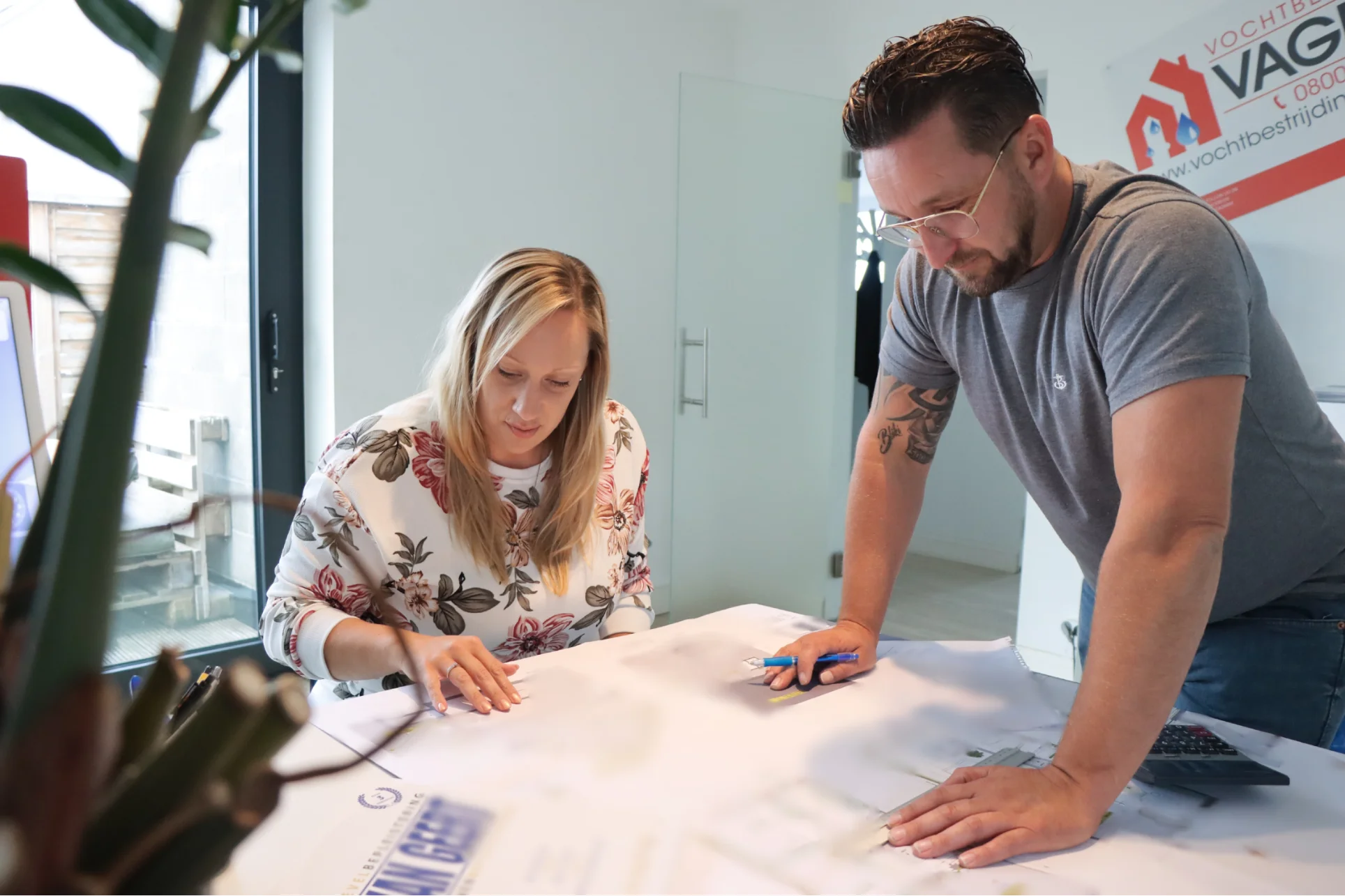 Bij VAGECO combineren we ervaring met een persoonlijke aanpak. Dimitri Van Geert en zijn sterke rechterhand Leen zorgen samen met hun ervaren team voor een snelle en professionele uitvoering, zodat jouw muren duurzaam en gezond worden behandeld.